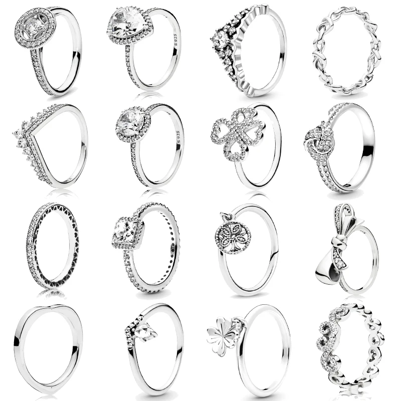Buen artículo y envío rápido. vendedor recomendado para Anillo de amor de Zircón hueco para mujer, sortija de amor Chapado en plata con nudo de lazo para Dedo de árbol para pareja, joyería de compromiso de boda