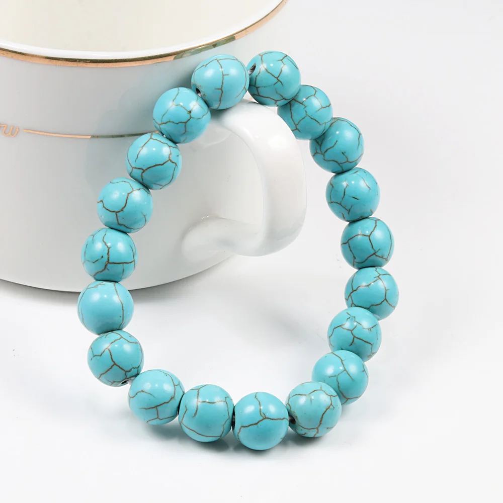 Name: Pulsera clásica de cuentas de piedra Natural para mujer, brazalete de hilo de turquesas azules, abalorio, Yoga, Paryer, joyería para hombre, 6/8/10mm
