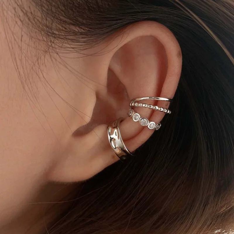 Name: 925 Sterling Silver Zircon pendientes mujer doble giro sin perforado guerra Clip oreja pendientes de Clip pendientes largos aretes pendientes 3 unids/set