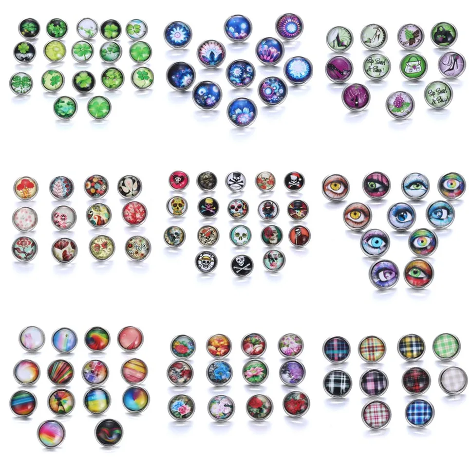 Name: 10 unids/lote 12mm joyería mezclados al azar flor redondo de vidrio Mini 12mm botones de ajuste broche para brazalete, collar, pendientes,