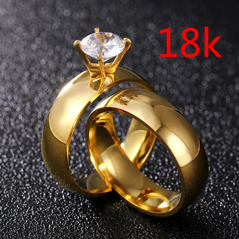 Name: Anillo de compromiso de boda para hombre y mujer, sortija grande de acero de titanio y circón, oro de compromiso, regalo de San Valentín