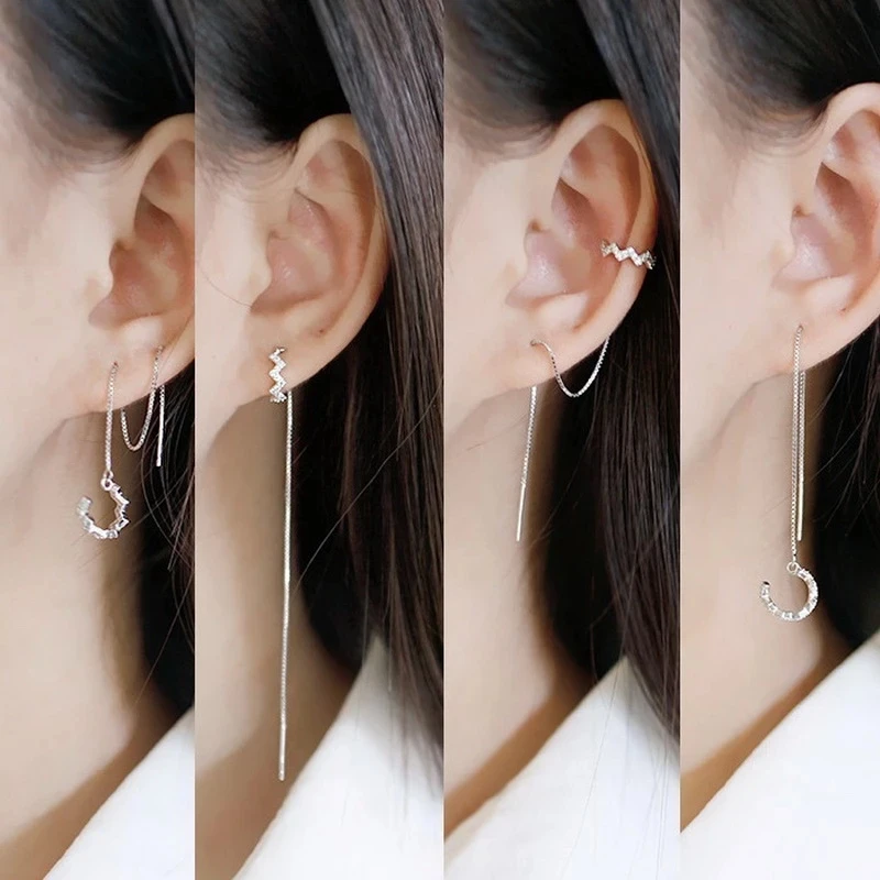 Name: De Zircon de moda borla con cadena larga pendientes de Clip pendientes largos aretes pendientes para las mujeres Retro chicas corona de Clip para hueso del oído-joyas pendientes de gancho regalo fiesta