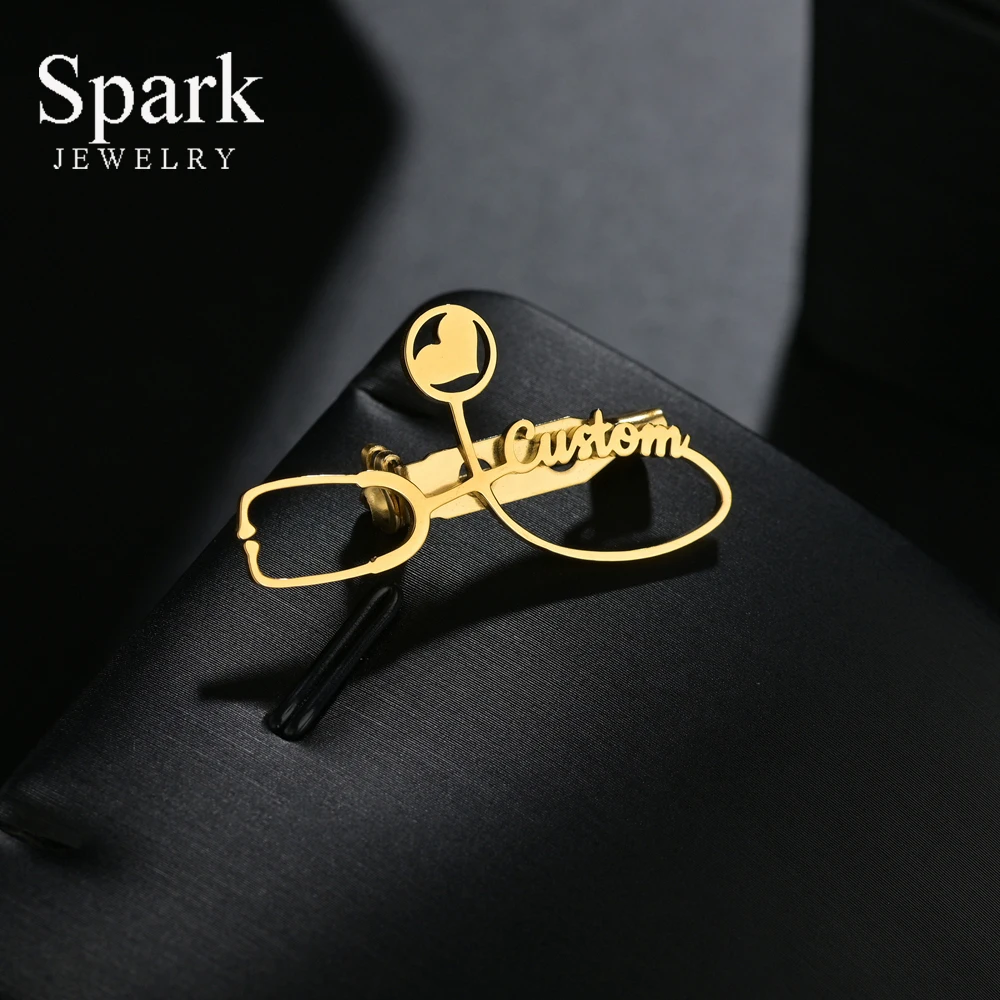 Name: Spark-broches de estetoscopio personalizados para hombre y mujer, broche de acero inoxidable con nombre personalizado, corazón, regalo médico