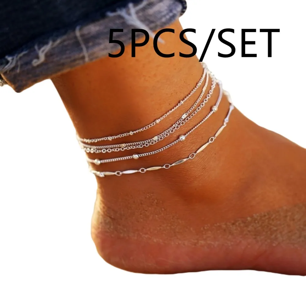 Name: 5 unidades/juego de cuentas para mujer, cadena de pulsera de tobillo con cuentas, tobillera Bohemia para mujer, sandalias descalzas, pulsera para pierna de pie, regalo de joyería
